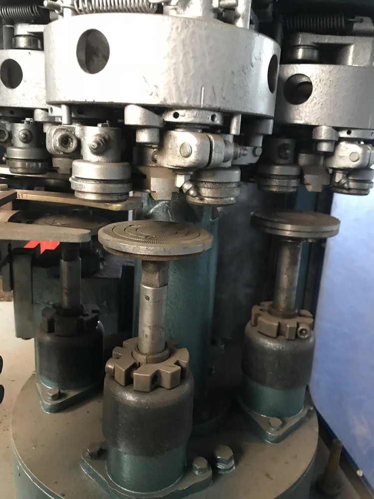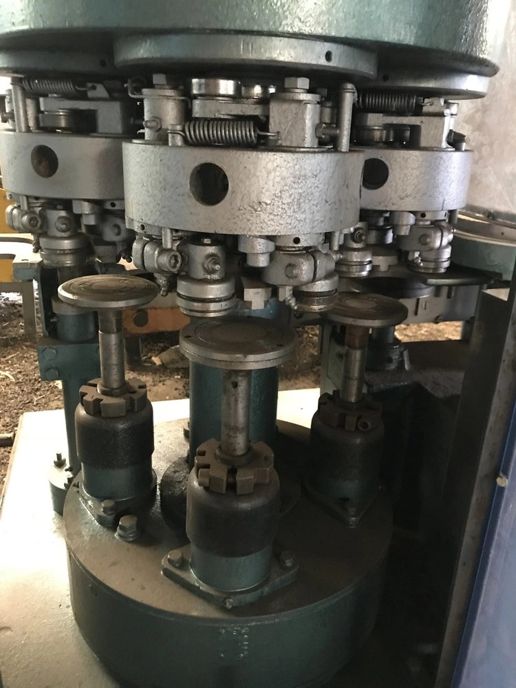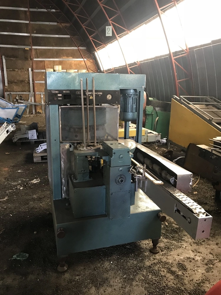 Банки надходять на транспортер, звідки приймальною зіркою подаються в механізм закочування. Одночасно відбувається відділення кришок у магазині та видача їх поштучно в маркер, де вони маркуються і подаються механізмом подачі кришок у механізм закочування. , що описують її контур До закочувального патрона банку підтискається підтискним столом.
