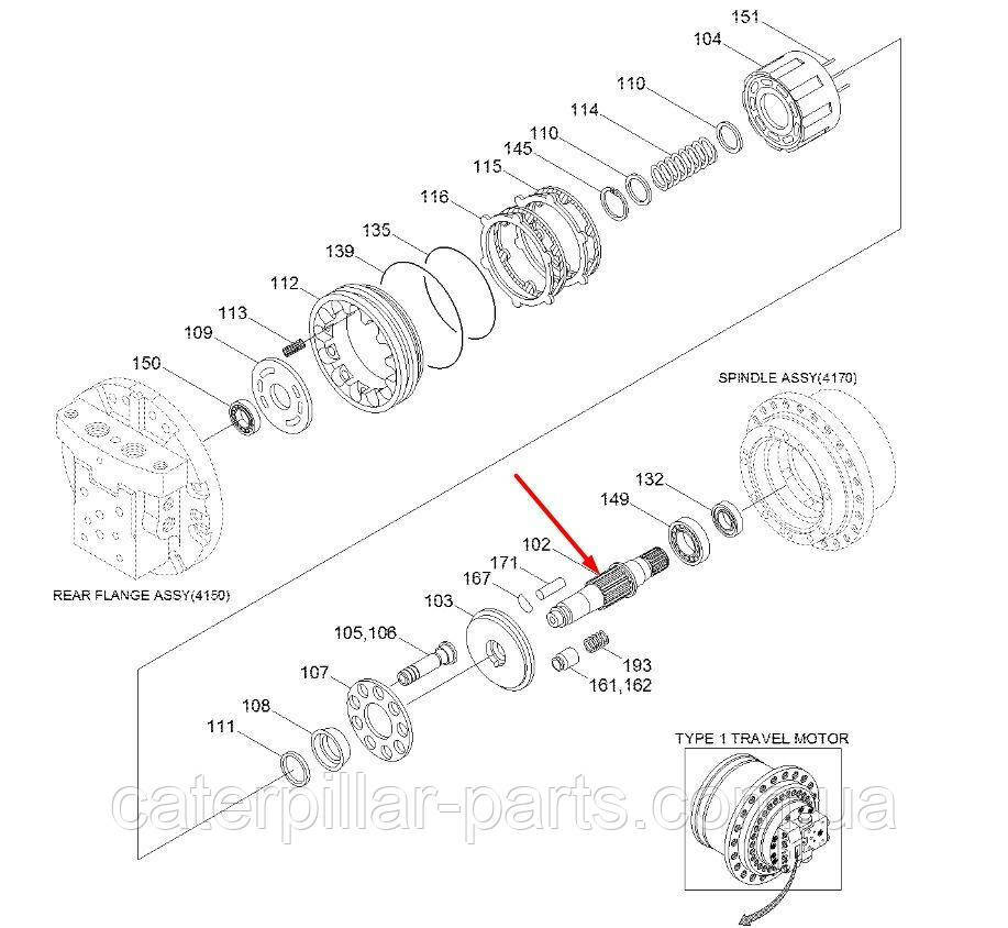 Вал гідравлічного мотора ходу, застосовується на екскаваторах Hyundai R140LC-7, R140LC-7A, R160LC-7, R160LC-7A