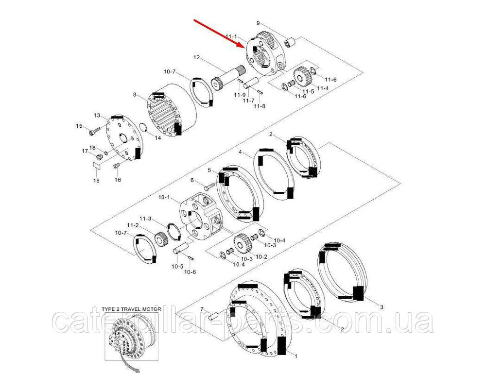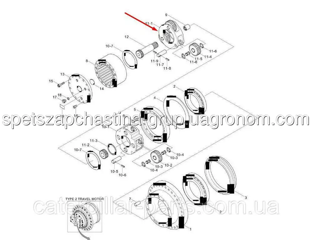 Планетарна передача редуктора ходу першого ступеня Hyundai HX140, HX160, HX180, R110, R140, R160, R180, R210, R215, R220, R235
