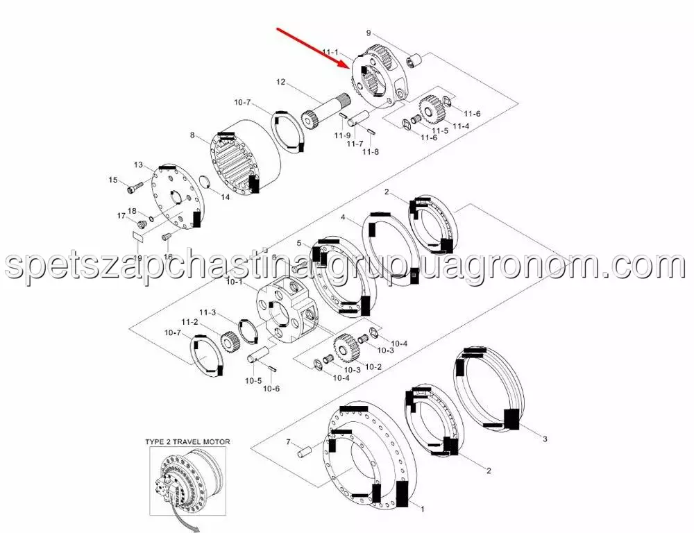 Планетарна передача редуктора ходу першого ступеня Hyundai HX140, HX160, HX180, R110, R140, R160, R180, R210, R215, R220, R235