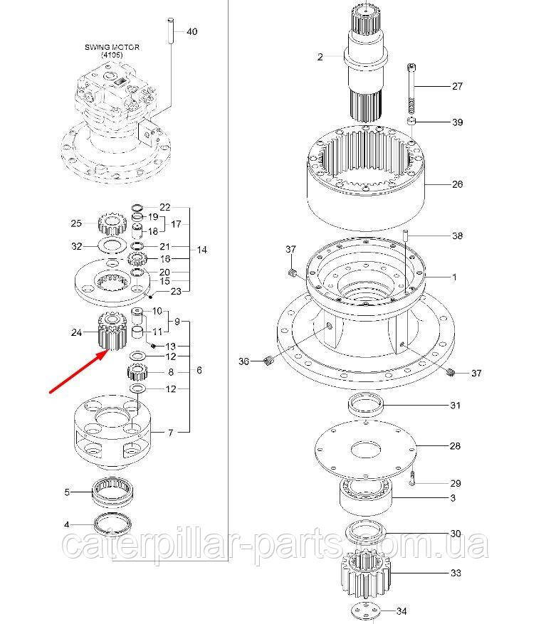 Сонячна шестерня на гусеничних екскаваторах Hyundai R290LC-9, R300LC-9S, R330LC-9S, R330LC-9SH