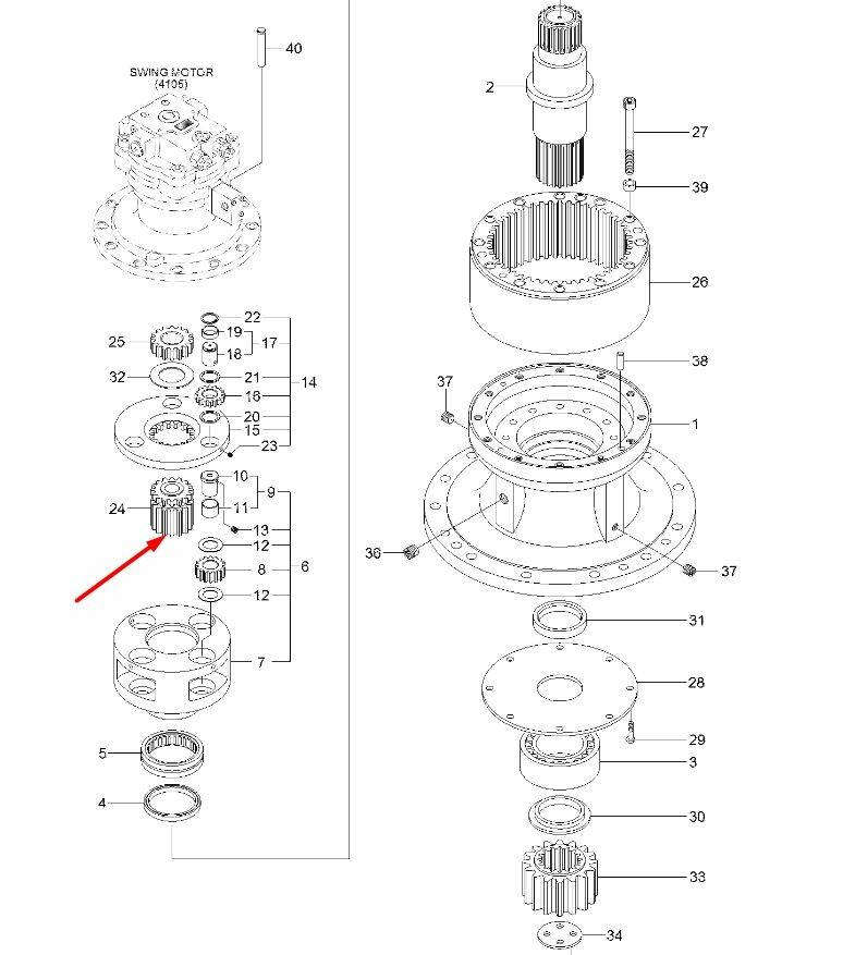 Сонячна шестерня на гусеничних екскаваторах Hyundai R290LC-9, R300LC-9S, R330LC-9S, R330LC-9SH