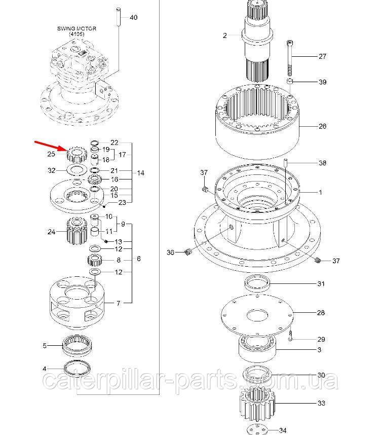 Сонячна шестерня на гусеничних екскаваторах Hyundai R290LC-9, R300LC-9S, R330LC-9S, R330LC-9SH