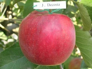 Яблоня Декоста - клон популярного сорта яблок Джонаголд. По силе роста деревья яблони Декоста, форме кроны, устойчивости не отличается от сорта Джонаголд. Плоды очень крупные, одномерные, средней массой около 200 г, желтого оттенка, с малиново-красным штриховатым румянцем почти по всей поверхности плода. Мякоть плода очень сочная, средней плотности, кисло-сладкого вкуса, прекрасных вкусовых качеств. Зимостойкость деревьев выше средней. Деревья очень скороплодны. Урожайность высокая, стабильная. Плоды созревают в конце сентября, прекрасно улеживаются и сохраняются до весны. Период созревание плодов яблони Декоста практически совпадает с периодом созревания яблони Джонаголд. Транспортабельность и товарность плодов очень высокая. Назначение универсальное. Успешно возделывается в промышленных насаждениях.