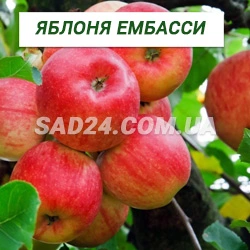 Плоди яблуні Ембасі Плоди добре зберігаються в холодильнику протягом декількох місяців. Сорт стійкий до парші та борошнистої роси. висока врожайність, добре пристосовується до будь-яких умов, дуже морозостійка. Крона потужна, широко-пірамідальна, середньої занедбаності. Є дуже цінним сортом літнього терміну дозрівання. Де купити саджанці яблуні