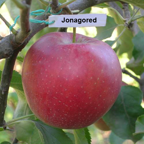 Плоди Джонагоред 170-200 грамів, округлі, з інтенсивним темно-рожевим розмитим рум’янцем на поверхні.