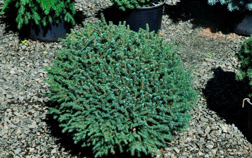 Переваги: Ялина чорна Nana - прекрасний округлий варіант карликової ялини з цікавим габітусом, витонченими рівними пагонами і декоративною сіро-зеленою хвоєю. Рослина морозостійка, не вимоглива, добре росте на будь-яких садових грунтах.
