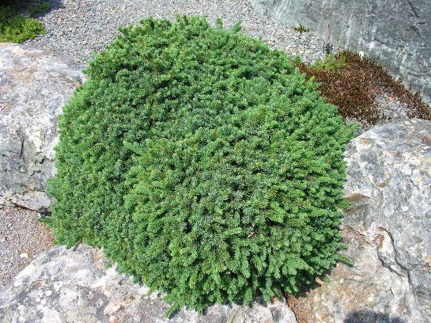 Опис: Один з найбільш популярних сортів карликових ялин. Дуже гарний, витончений карликовий хвойний чагарник, з правильною, щільною, приплюснутою формою крони, блакитно-зеленого кольору. Має високу морозостійкість, не вимоглива у догляді і до умов вирощування. Picea Nana ніколи не стане тягарем в маленькому саду.