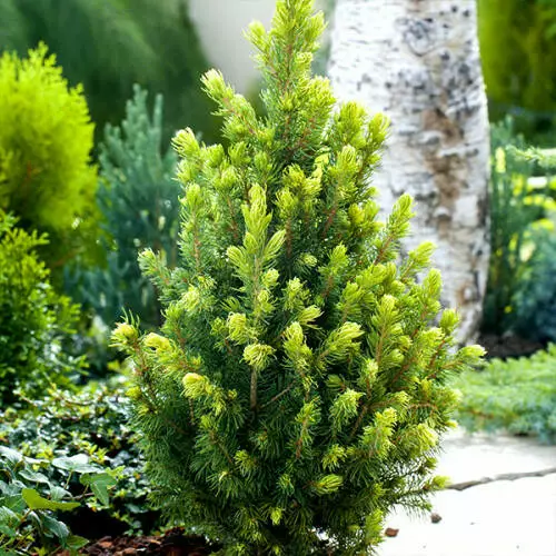 Форму вона має конічну, росте ще повільніше ніж 'Коніка', нові пагони навесні бежеві та жовті, а з середини літа, новий приріст - із позолоченими кінчиками. Ялина біла невимоглива до якості ґрунту, але уникайте як екстремально вологих, так і сильно сухих ґрунтів. Ця рослина чудово підійде для висадки в контейнер, і досить морозостійко, щоб витримати на відкритій терасі або балконі протягом цілого року. Найкраще висаджувати в сонце та півтінь. Морозостійка до -40°C.