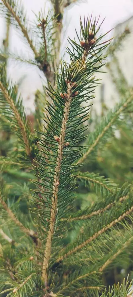 Хвоя довга до 20 мм, ромбічна у розрізі. Насичено-зеленого кольору.