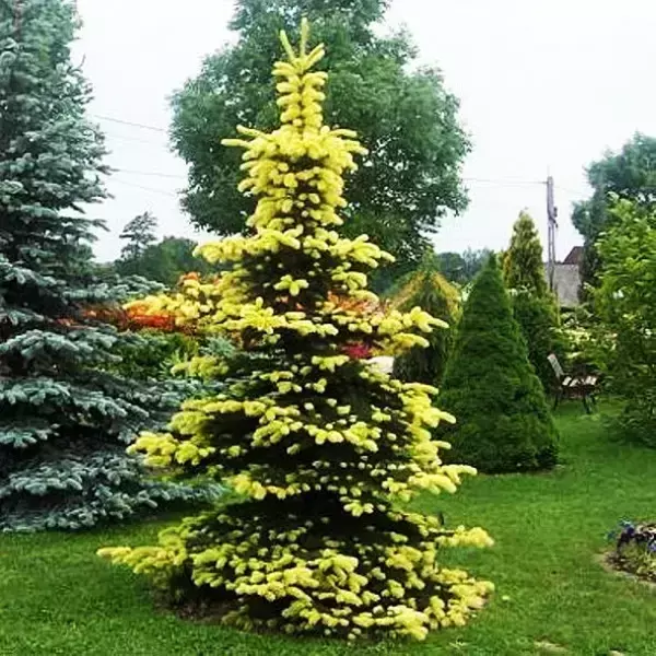 Хвоя: Ялина Майголд відрізняється весняним забарвленням хвої жовтого кольору, при цьому стара так і залишається зеленого кольору, завдяки чому з'являється дуже стильний контраст.