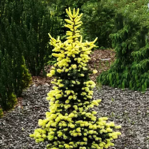 Ялина колюча Майголд - хвойне дерево, з широкою конусоподібною формою крони, яка досягає у висоту 2,5-4м. Перевагою цієї рослини вважаються, весняні прирости молодої хвої жовтого кольору на тлі минулорічної зеленої хвої, яка радує око протягом усього року і влітку на тлі зелені інших рослин і взимку на тлі білого снігу, а також компактність, морозостійкість і невибагливість у вирощуванні.