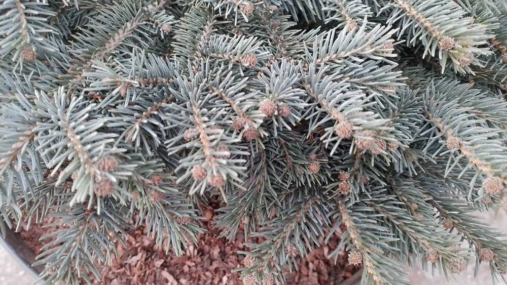 . Колекційна ялина з неймовірним кольором хвої. Молоді бірюзові прирости, стара хвоя кольору безхмарного сонячного неба.
