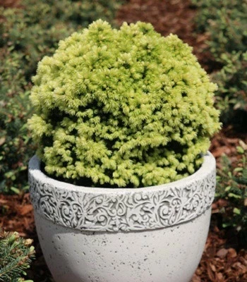 Привертає увагу, своєю майже ідеально - кулястою формою крони і яскраво-жовтим кольором весняних приростів. Хвоя ніжна, золотиста, поступово змінює забарвлення на зелене. Віддає перевагу помірно-вологому, злегка кислому грунту. Підходить для невеликих садків, рокаріїв, для висадки в контейнер, а також чудово виглядає привитою на штамбі. Морозостійкий.