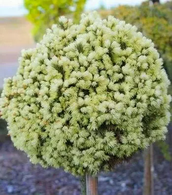 Привертає увагу, своєю майже ідеально - кулястою формою крони і яскраво-жовтим кольором весняних приростів. Хвоя ніжна, золотиста, поступово змінює забарвлення на зелене. Віддає перевагу помірно-вологому, злегка кислому грунту. Підходить для невеликих садків, рокаріїв, для висадки в контейнер, а також чудово виглядає привитою на штамбі. Морозостійкий.