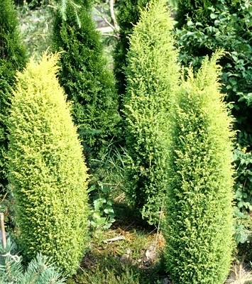 Сорт з щільною і стрункою вузько-колоновидною формою крони. Хвоя колюча, жовто-зелена, зимою жовто-коричнева. Віддає перевагу сонячним ділянкам, в тіні втрачає забарвлення хвої. До грунту не вимогливий. Морозостійкий. Добре переносить обрізку, що дозволяє створювати з нього приголомшливі садові композиції. Ідеально виглядає уздовж садових доріжок і алей, також непогано підходить і для одиночних посадок.