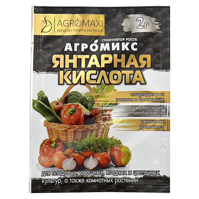 Бурштинова кислота (Бурштинова кислота), 2 г — підвищує імунітет, продовжує цвітіння, покращує схожість