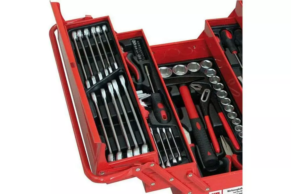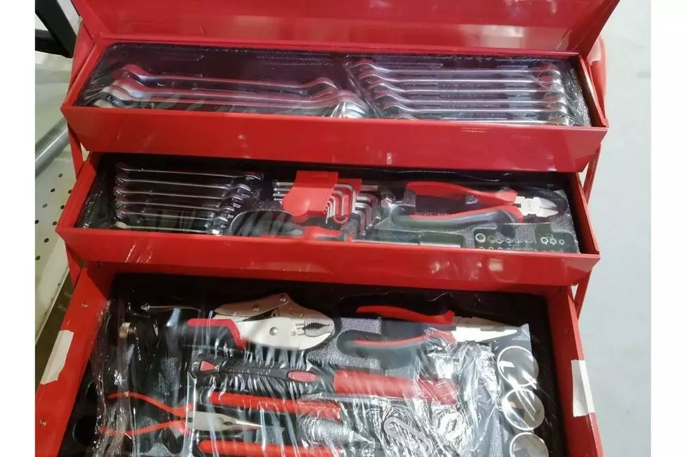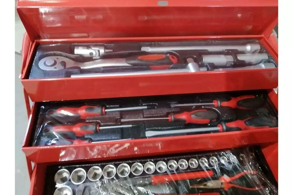 . 20 торцевых головок Ѕ (8-32 мм) 1 слесарный молоток 300 г 1 храповой механизм Ѕ 2 удлинителя Ѕ (5, 10) 1 T-образный вороток Ѕ (10) 1 карданный шарнир Ѕ 2 свечи зажигания Ѕ (16/21 мм) 17 комбинированных гаечных ключей (6-22 мм) 20 бит (Torx (T10-T50) и винты с внутренним шестигранником Inbus (2-10 мм)) 1 набор бит для шуроповёрта 8 шестигранных ключей со сферичекой головкой (1,5-10 мм) 1 бокорезы 150 мм 1 длинногубцы 150 мм 1 пассатижи 180 мм 1 трубный ключ 240 мм 1 зажимные клещи 250 мм 6 отвёрток (шлиц: 3x75, 4x100, 6x100, 8x150/крестообразный шлиц: PH1x80, PH2x100 мм) 1 металличекий ящик для инструментовБезналичный расчёт