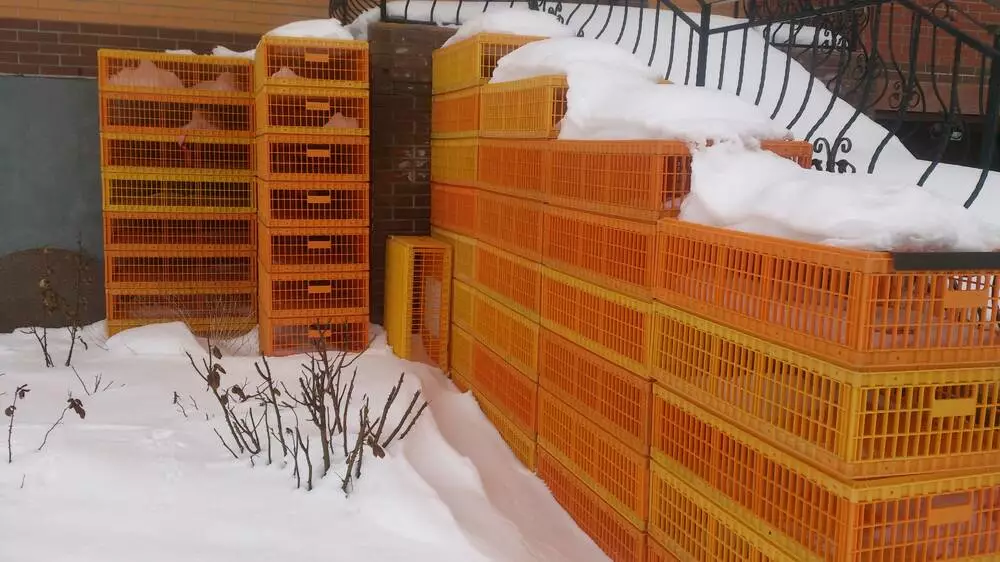 Виконаний з високоміцного італійського пластику помаранчевого і білого кольорів. Конструкція транспортировочной клітини посилено по краях і кутах для більшої міцності. Довговічний. Легко і зручно мити на відкритому просторі з садового шланга. Для посадки птиці ящик для перевезення оснащений зручними безпечними дверцятами, що відкривається шляхом зсуву по полозах. При відкритті дверцят на верхній стінці ящика утворюється отвір розміром 40х35 см