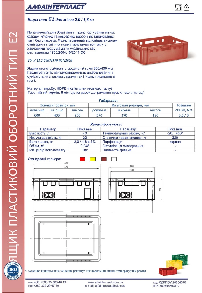 Ящик HDPE тип Е2 600х400х200 мм первинний 1,8 кг