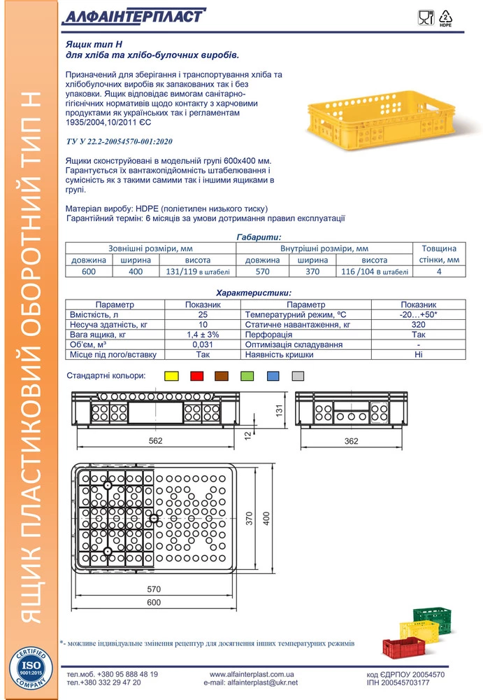 Ящик HDPE тип Н 600х400х131 мм первинний