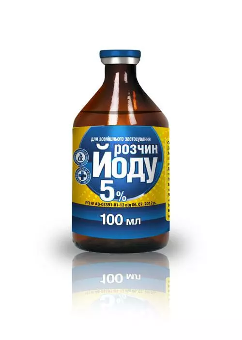 100 мл препарату містить діючі речовини (г): йод кристалічний - 5; калію йодид - 2.