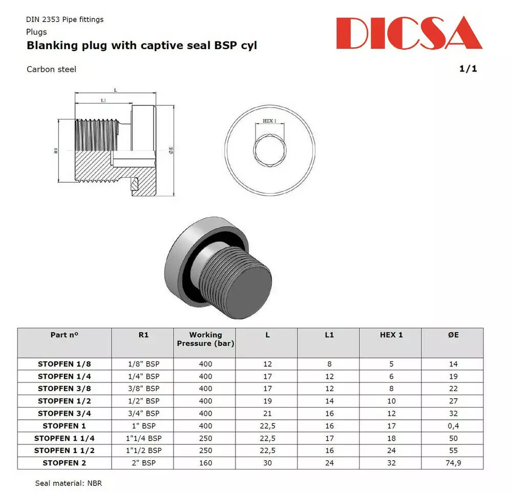 Заглушка 1/4" — 19 BSP AGRF (ED у порт) DICSA, Іспанія