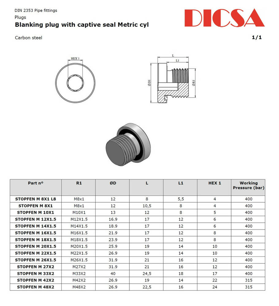 Заглушка М22х1,5 AGMF (ED у порт) DICSA, Іспанія за найкращою ціною від постачальника гідравліка No1 в Україні
