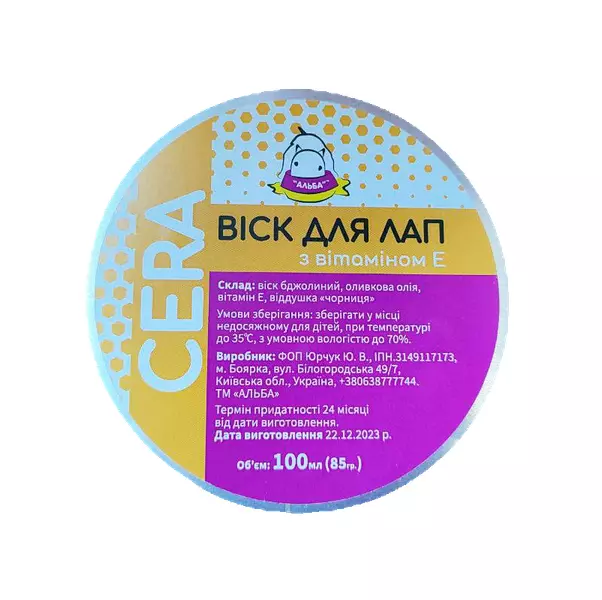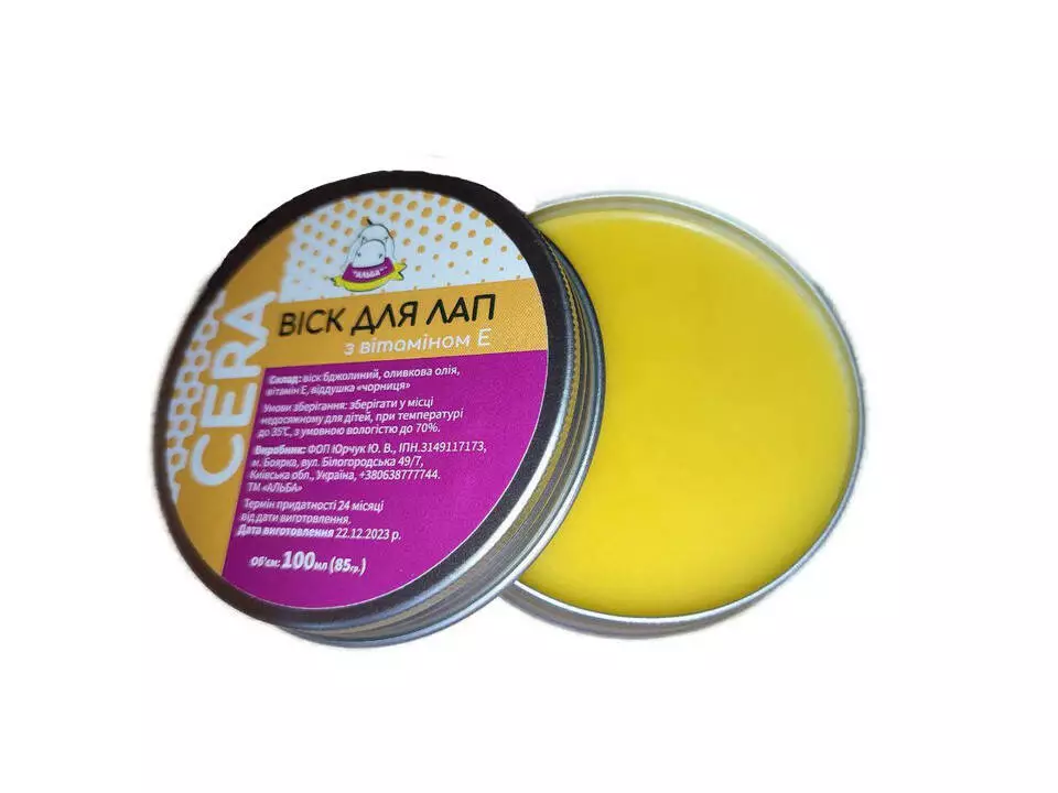 Віск для лап з вітаміном Е – турбота про комфорт та здоров'я ваших вихованців. Унікальна формула, в основі якої бджолиний віск, оливкова олія та ароматизатор, забезпечує ніжний догляд за лапками домашніх улюбленців.