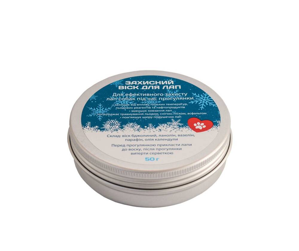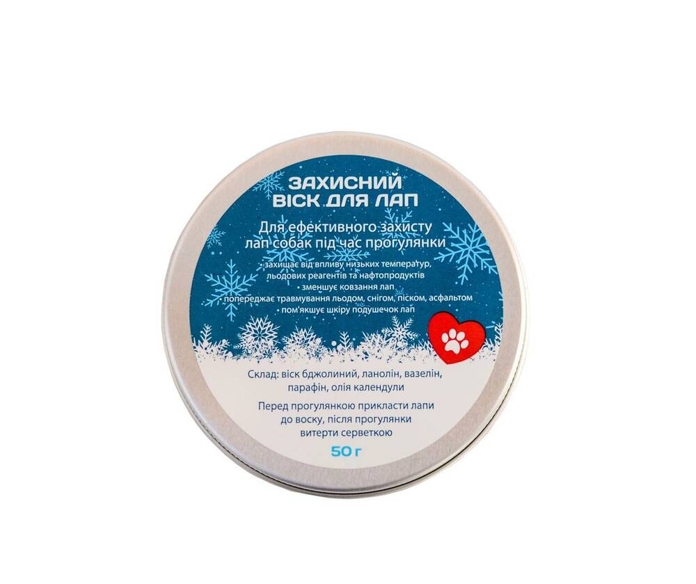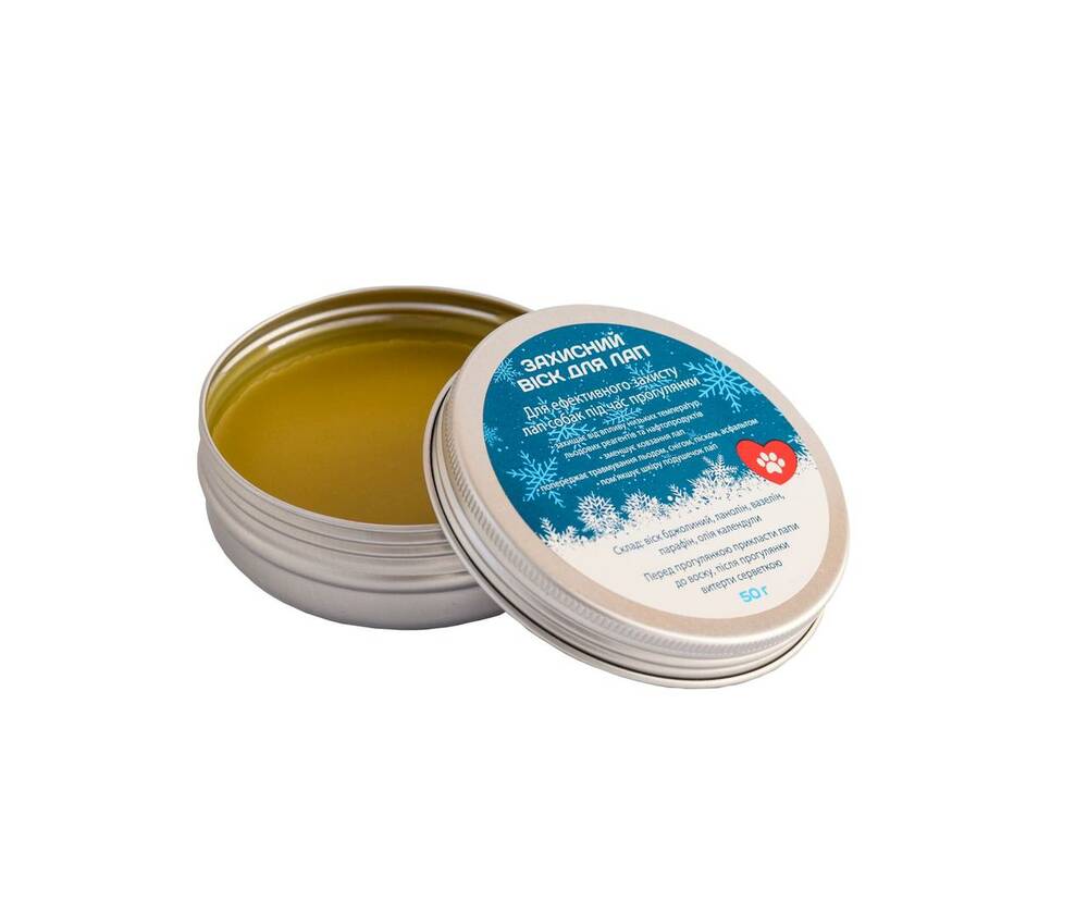 Натуральний бджолиний віск має бактерицидні та протизапальні властивості, пом’якшує шкіру, сприяє загоєнню ран. Він формує захисну жирову плівку, яка ефективно захищає шкіру лап від впливу низьких температур, вологи, переохолодження. Крім цього, віск ущільнює шкіру лап, роблячи її більш стійкою до пошкоджень на грубих поверхнях.
