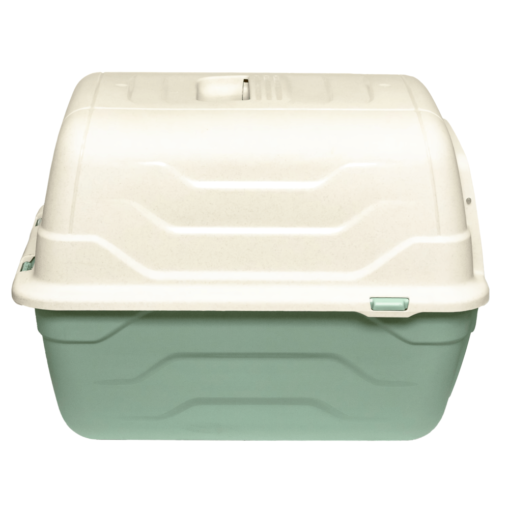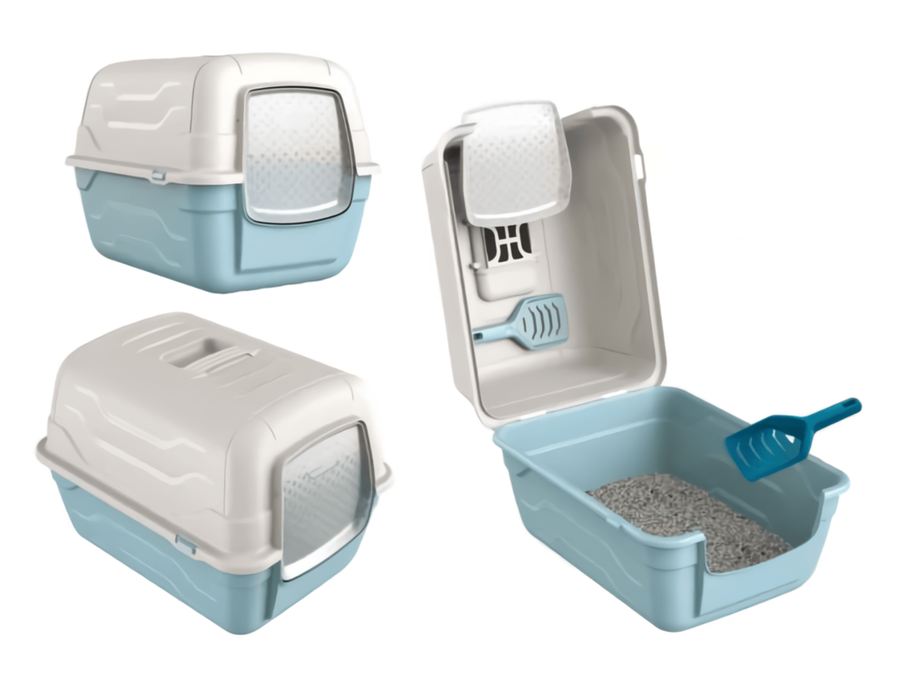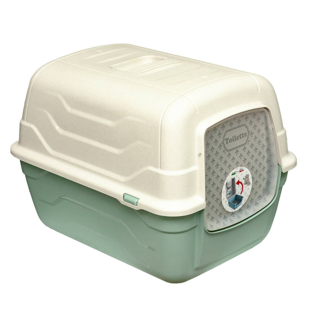 Georplast Roto Toilet - це туалет закритої форми для котів, виготовлений з міцного пластику екстра-класу. Комплектується модель вугільним фільтром, який чудово утримує неприємні запахи, і лопаткою, яка в рази спрощує прибирання вмісту. Симпатична матова дверка легко відкривається і прекрасно приховує від сторонніх очей вміст лотка та кота під час його усамітнення.