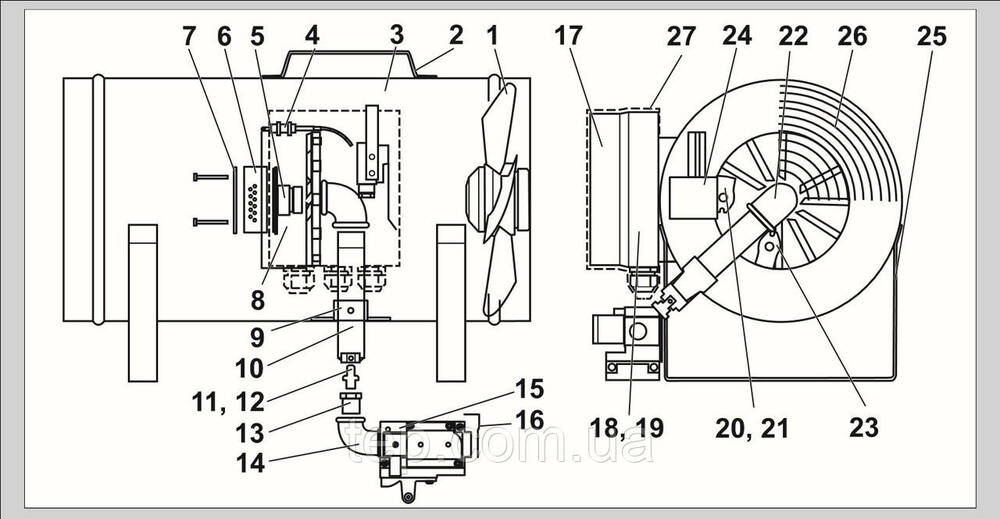 При заказе запасных частей, пожалуйста, указывайте номер артикула с наименованием и номером позиции запасной части, а также серийный номер обогревателя.