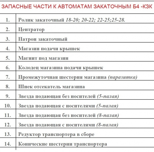Продаємо будь-які запасні частини до закатних машин Б4-КЗК , всі подробиці по телефону.