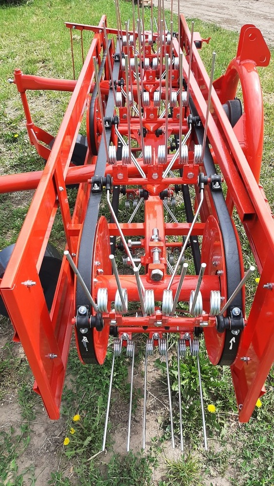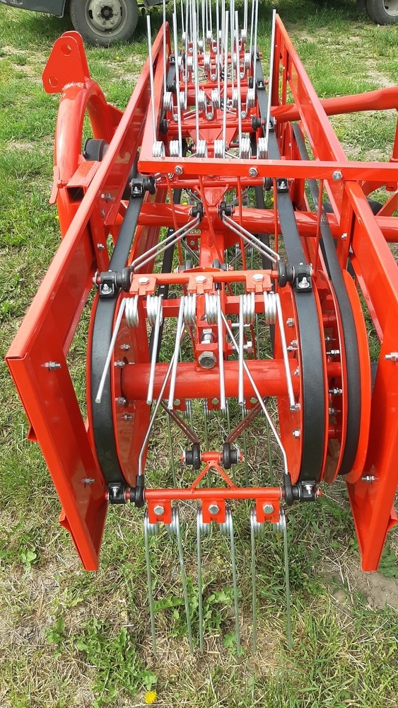 Прут граблина зуб пасової грабарки. Використовується на навісних пасових грабарках Польського виробництва. Кріпиться на ремінь пасової грабарки за допомогою спеціального кріплення яке поміщає в ряд три подвійних граблини. Пластикові втулки прикручуються до ремня грабарки та забезпечують надійну основу для роботи механізму граблин.