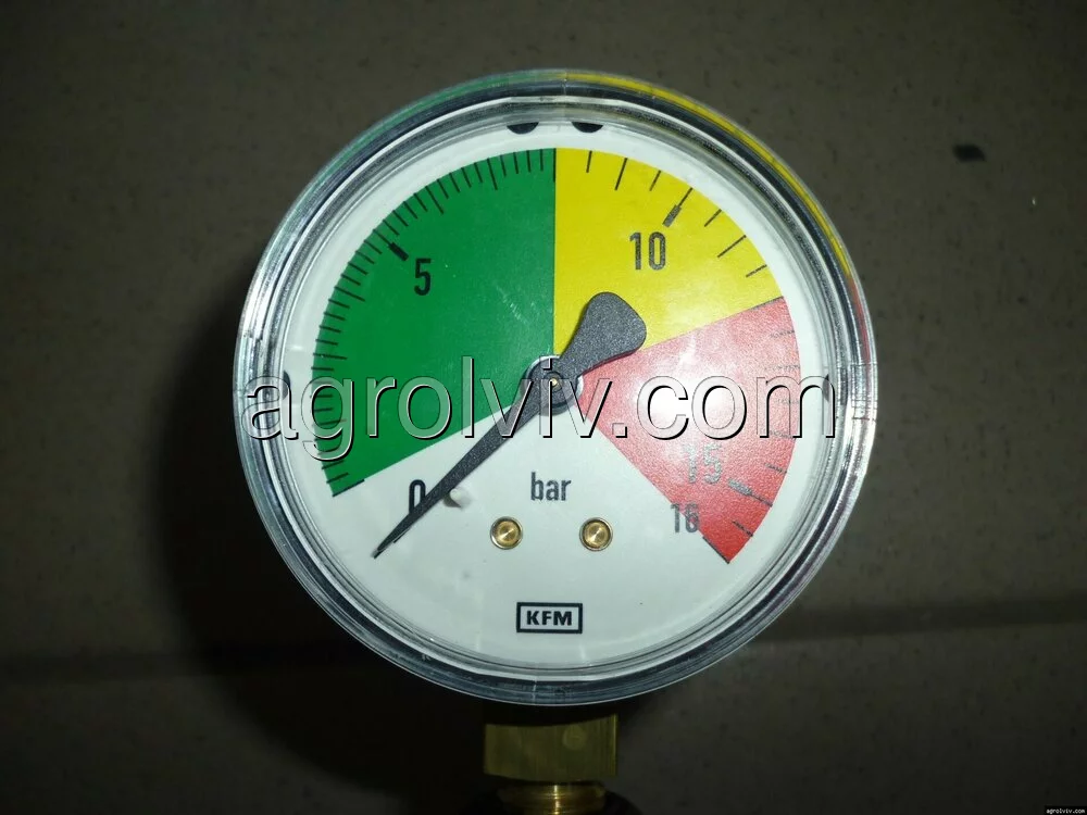 Манометр також знайшов своє місце в сільськогосподарській техніці, а саме в оприскувачах різної ємності та з різним розмахом крил. Встановлюється манометр на розподільник оприскувача, з його допомогою можна відрегулювати тиск в системі оприскувача, та подачу тої чи іншої рідини (хімії) на форсунки оприскувача. Сам процес регулювання тиску в оприскувачах відбувається за допомогою розподільника, який має регулювальну ручку, а манометр показує заданий тиск.