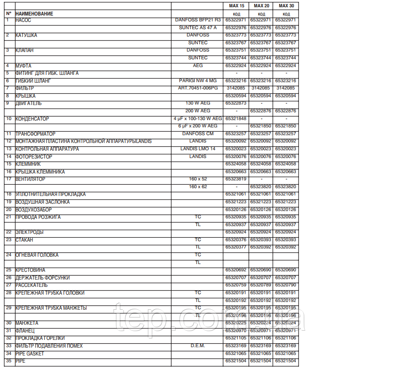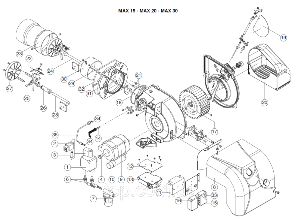 Запчасти для жидкотопливной ( дизельной ) горелки Ecoflam MAX20 мощноcтью до 237кВт