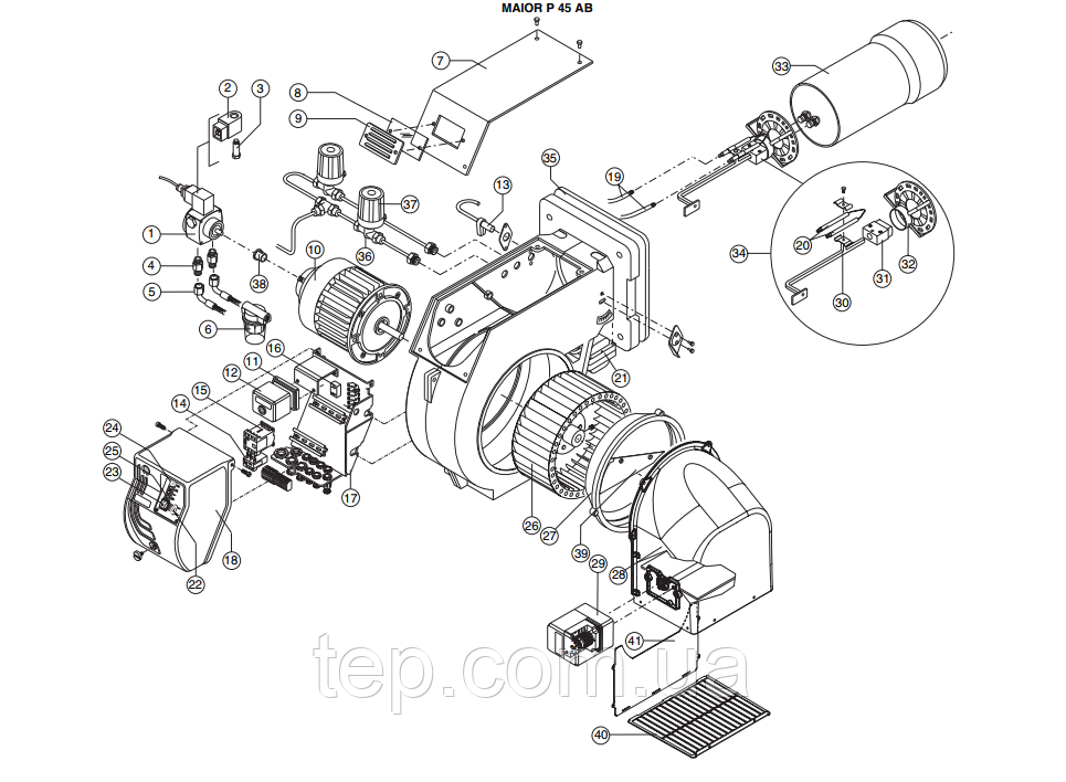 Список запчастей для горелок Ecoflam Maior P 45 AB
