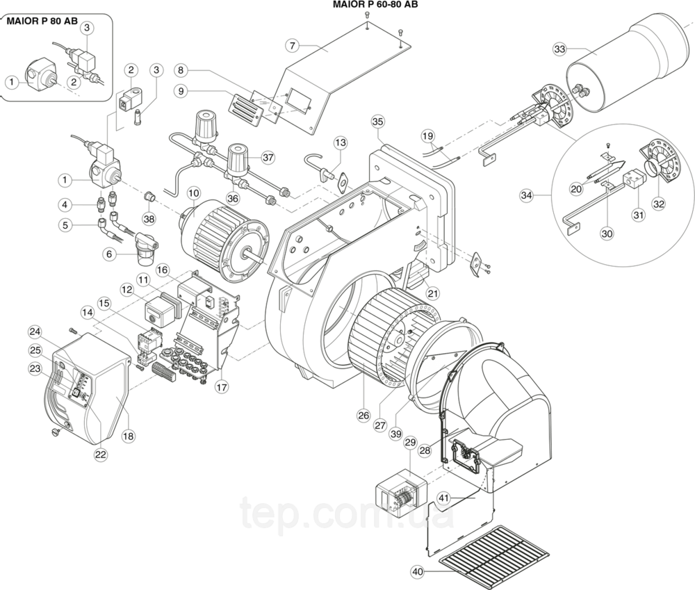 Список запчастей для горелок Ecoflam Maior P 60 AB