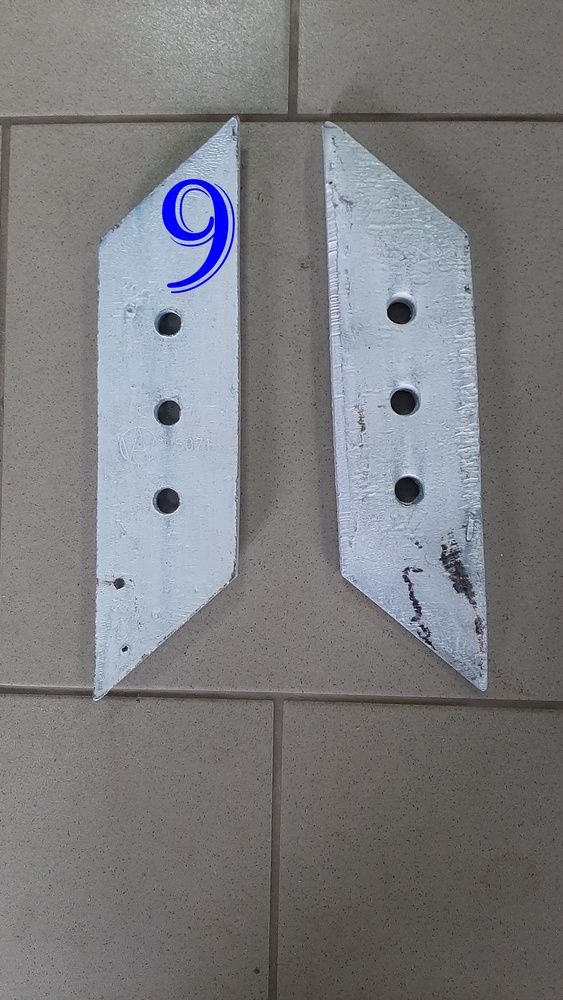 3. Леміш для одеського плуга УСИЛЕНИЙ з носиком, шириною захвату корпуса 30 см. Висота леміша 150 мм; ширина по верху 410 мм; ширина по низу 650 мм; відстань по центру отворів 135 мм та 115 мм.