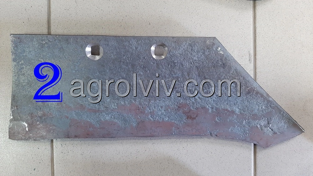 Леміш для плуга бомет з шириною захвату корпуса 25 см. Висота леміша 155 мм; ширина по верху 315 мм; ширина по низу 480 мм; відстань по центру отворів 95 мм.