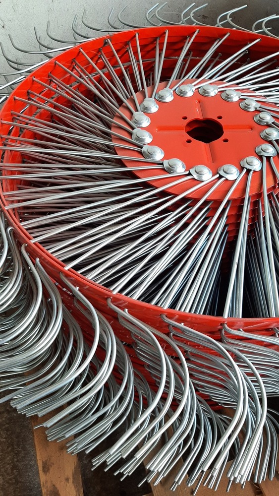Спиці пружинні граблів сонечко використовуються на навісних грабарках Українського та польського виробництва. Не залежно від того скільки коліс має навісна грабарка чотити або п’ять, прути всі одинакові, єдина відмінність спиць в тому, що вони можуть бути чорні та оцинковані. Товщина прута граблів 6 мм. Стальні граблини кріпляться на диск грабарки за допомогою болта, гайки та прижимної втулки. Зовні спицю підсилює кругла металева полоса з отворами на яку йде найбільше навантаження під час обертання коліс сіноперекидалки.