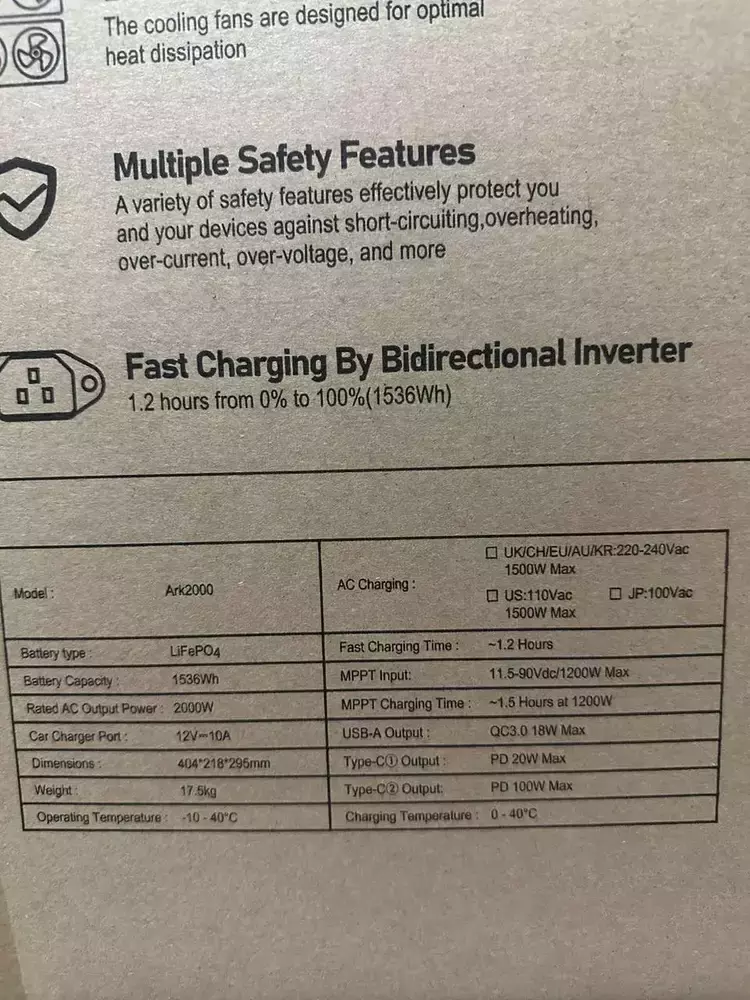Кількість виходів: 2 розетки на 220В, 2 USB-A, 2 USB-С, 1 прикурвач, 1 для сонячної панелі.