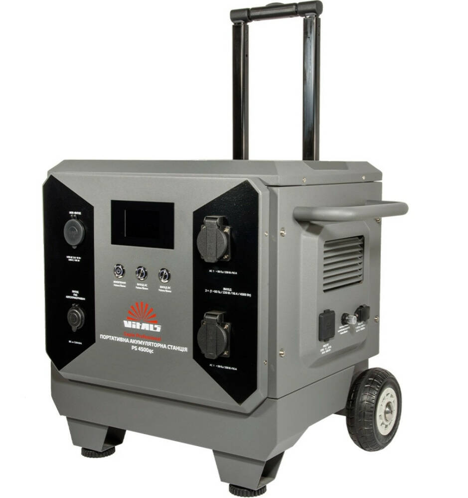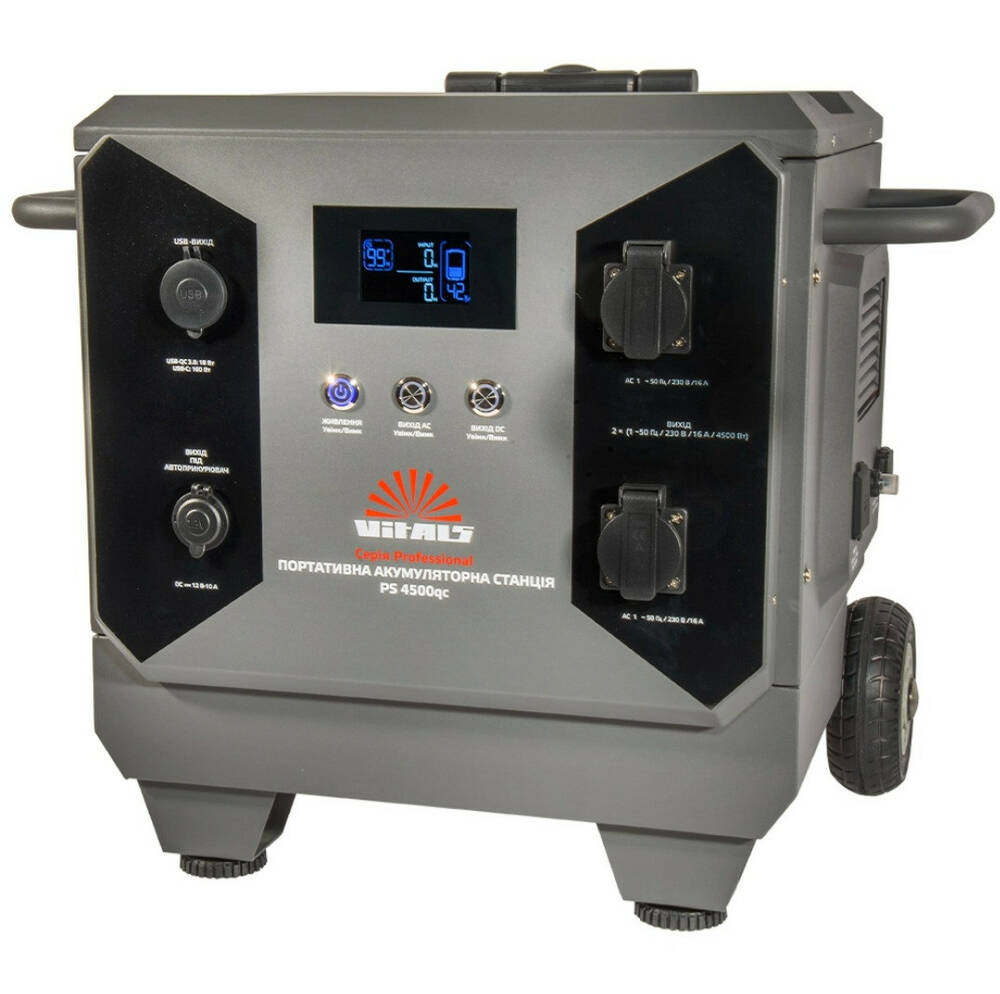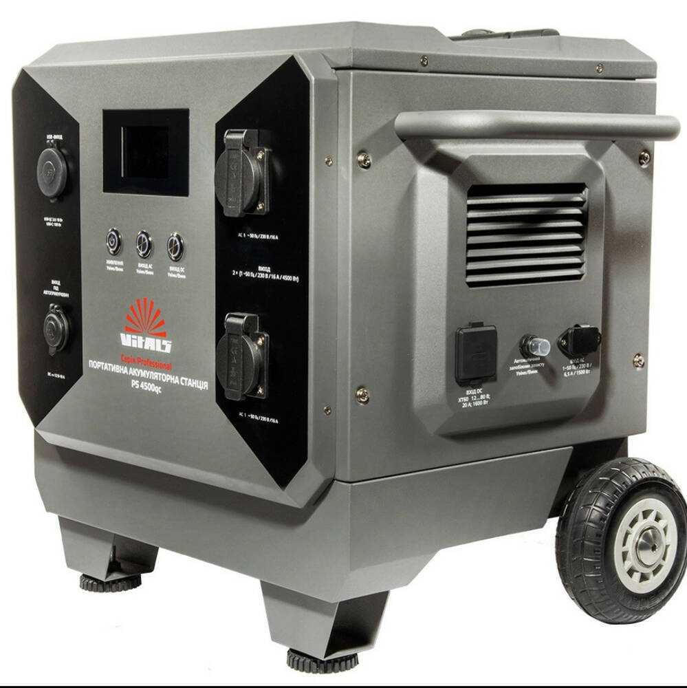 Батарея Технологія: LiFePO4 (літій-залізо фосфатні) Місткість, Вт·год: 5120 Параметри заряду станції Vitals Professional PS 4500qc Потужність зарядки від сонячної панелі, Вт:1600, 12-80В, 20 А Час зарядки від розетки, год: 4 Можливість підключення сонячної панелі: є Дисплей: є Ліхтарик: немає Розміри, мм: 695x480x710 Вага, кг: 81 Ручка для перенесення: є Додатково: регульована вхідна потужність