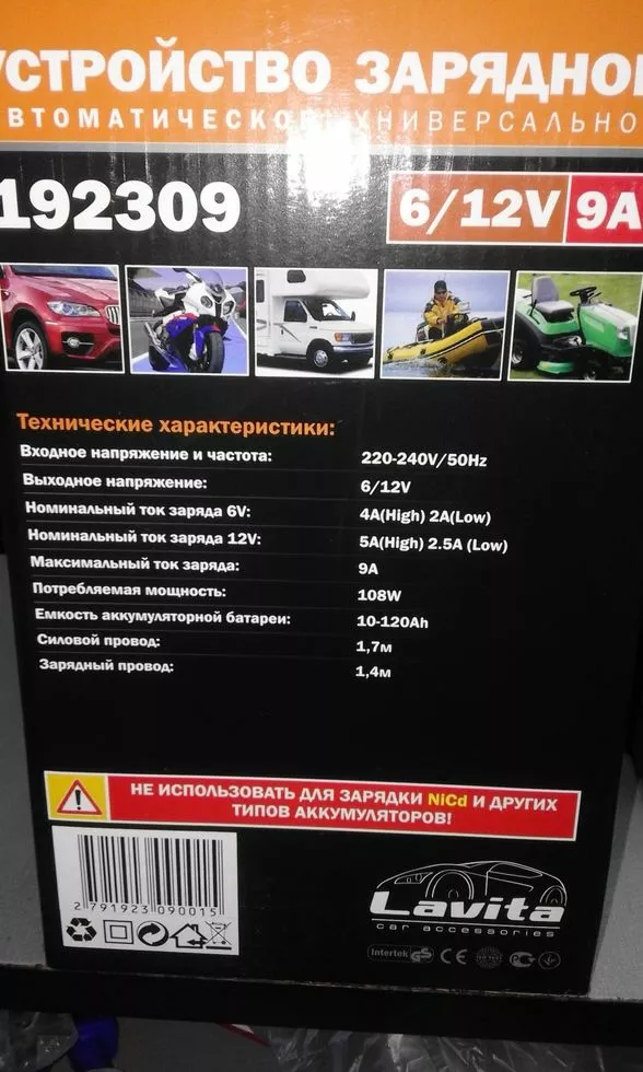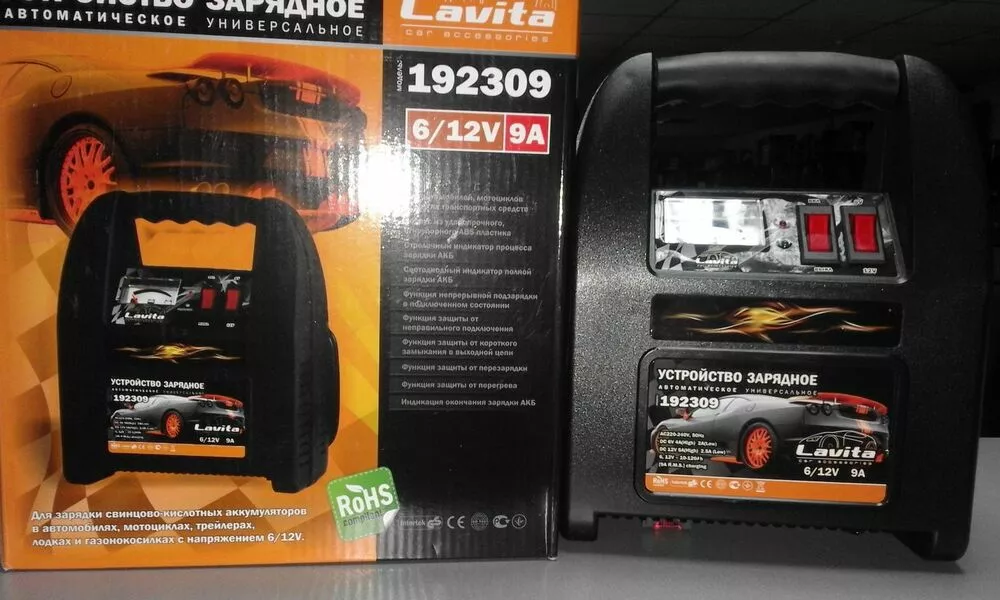 Lavita LA 192309 - зарядний пристрій, необхідне для зарядки свинцево-кислотний акумуляторів автомобілів, мотоциклів, автофургонів, трейлерів, катерів, газонокосарок з напругою 6/12 В. Корпус з ударостійкого, вогнетривкого ABS пластику.