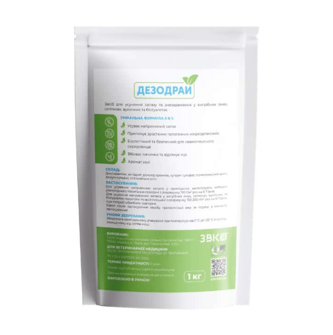 Засіб для усунення запаху у вигрібних ямах, септиках, вуличних та біотуалетах “Дезодрай” 1 кг ЗВК