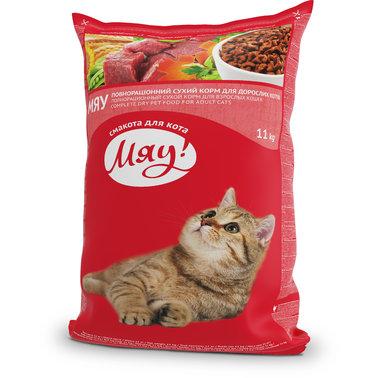 Сухий корм для котів «Мяу!» – це збалансоване щоденне харчування дорослих котів. Корм збагачений всіма необхідними корисними речовинами: білками, жирами, вуглеводами, вітамінами та мінералами.