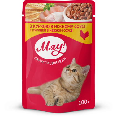 Вологий корм Мяу! для дорослих кішок "З куркою в ніжному соусі" 85 г (блок 24 шт.)
