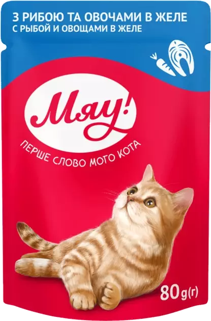 Збалансований вологий корм Мяу! для дорослих котів "З рибою та овочами в желе", 80 г