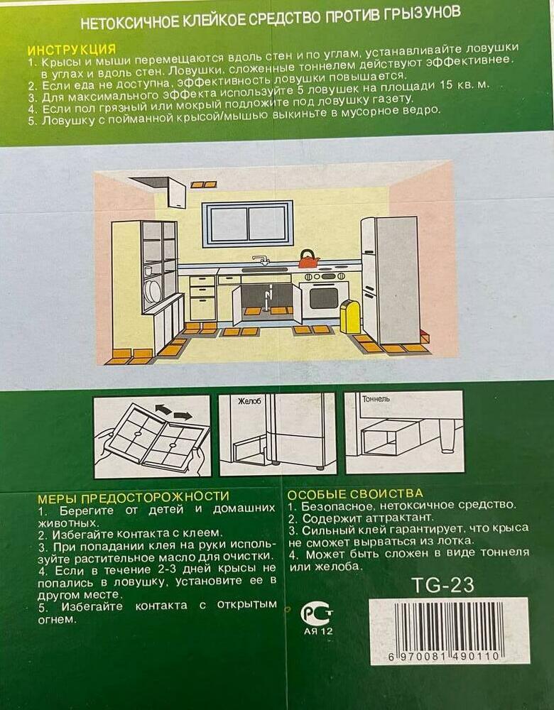 Запобіжні заходи. При зборі пасток з спійманими гризунами, використовувати гумові рукавички.
