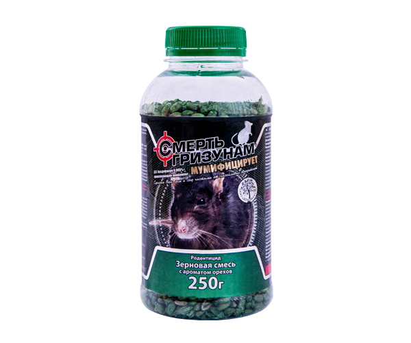 Смерть гризунам — Родентицидний засіб у формі отруєної зернової суміші для знищення щурів і м'язових гризунів у житлових і нежитлових приміщеннях, а також на присадибних ділянках і сільськогосподарських угіддях.